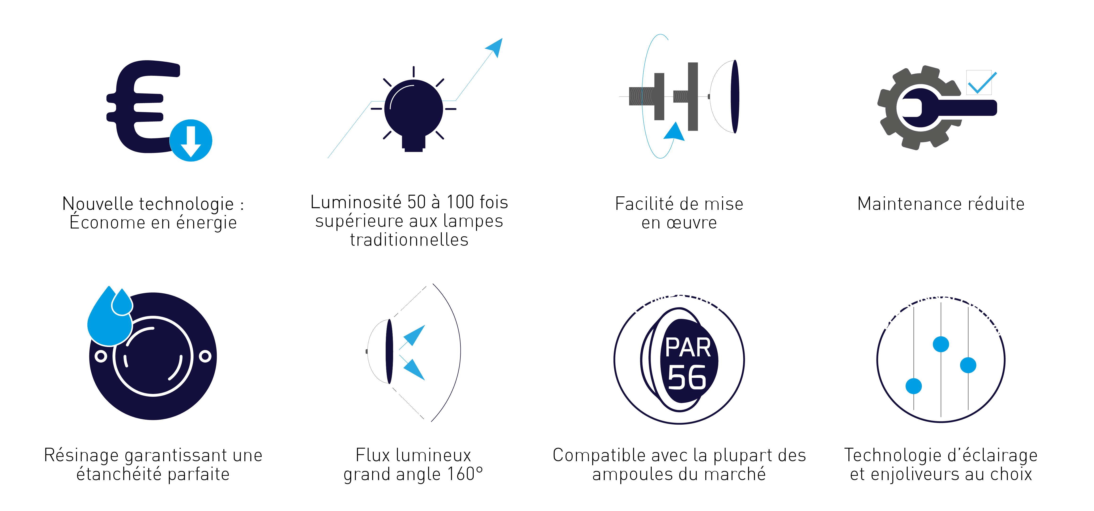 ◦ Compatible avec tous les projecteurs de piscine PAR56 du marché, niche existante