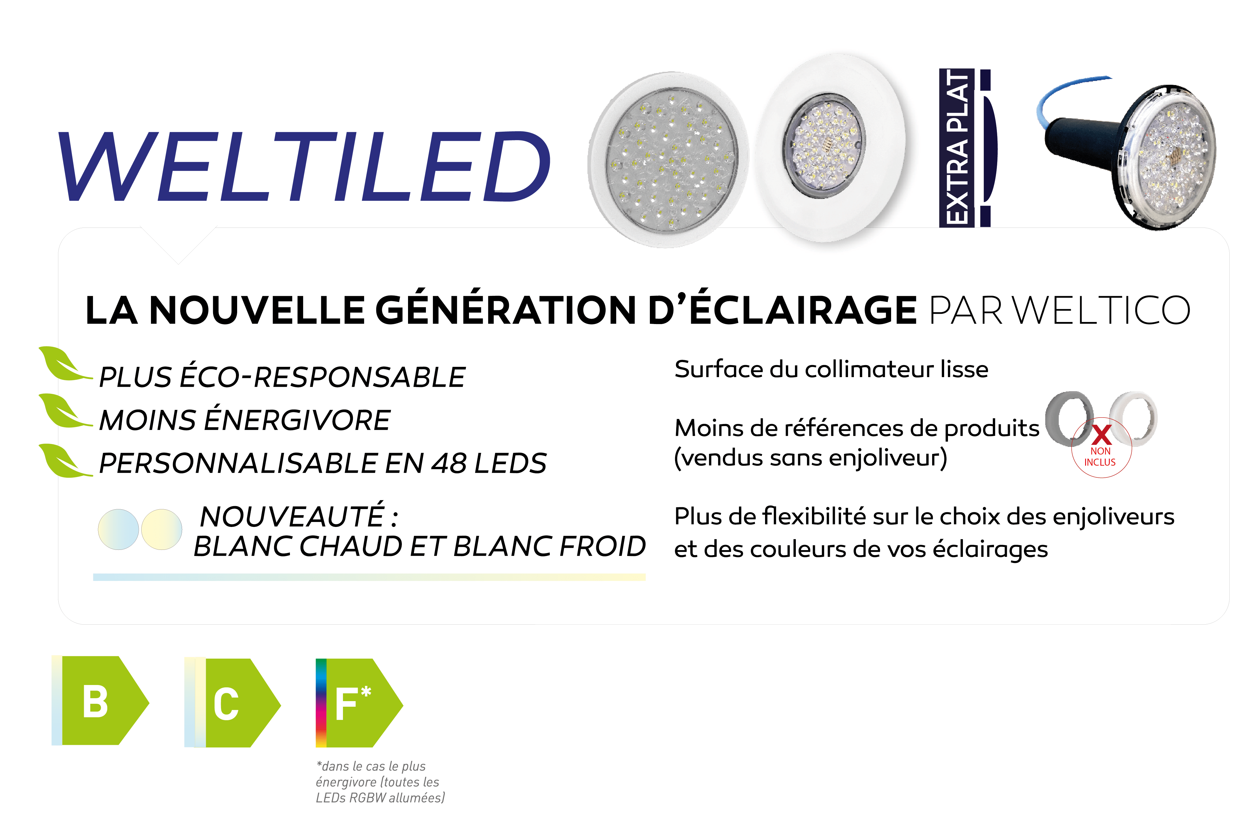 ◦ Disponible en éco 33 LEDs Blanc ou 48 LEDS BLANC CHAUD/FROID & RGBW
